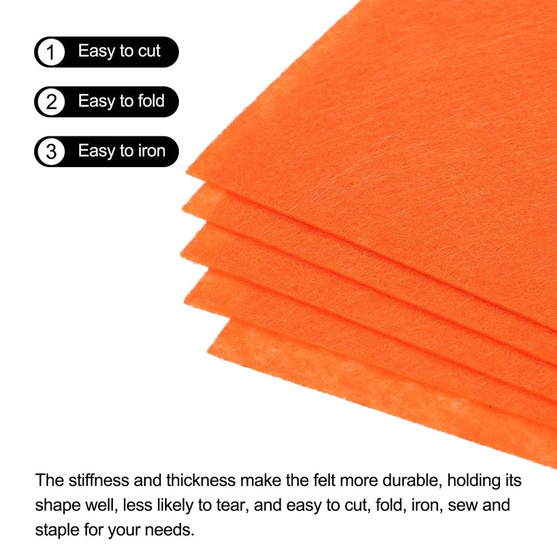 The stiffness and thickness make the felt more durable, holding its shape well, less likely to tear, and easy to cut, fold, iron, sew and staple for your needs.