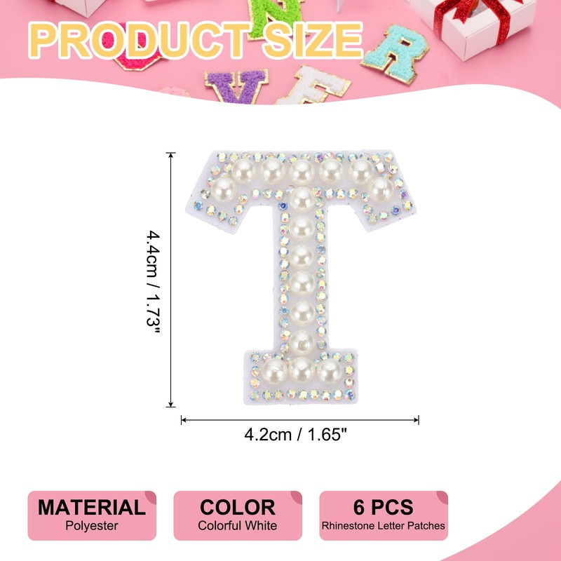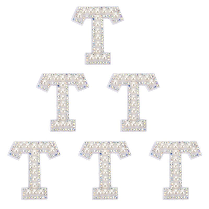 PATIKIL Strass-Buchstaben-Aufnäher, 6 Stück, Anfangsbuchstaben T, selbstklebender Aufnäher, bestickter Stoff, 4,4 cm, Alphabet-Aufkleber für Kleidung, Hüte, Make-up-Taschen, DIY, buntes Weiß