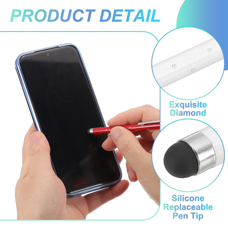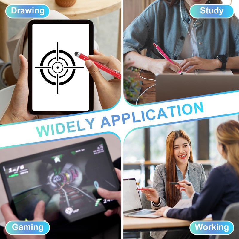 - Application: These shimmering crystal universal metal capacitive pens feature ultra-sensitive rubber tips made of soft silicone, ensuring gentle contact with screens to prevent scratches. Suitable for smooth writing, sketching, detailed drawing, precision work, coloring, note-taking, gaming, studying, and office tasks.