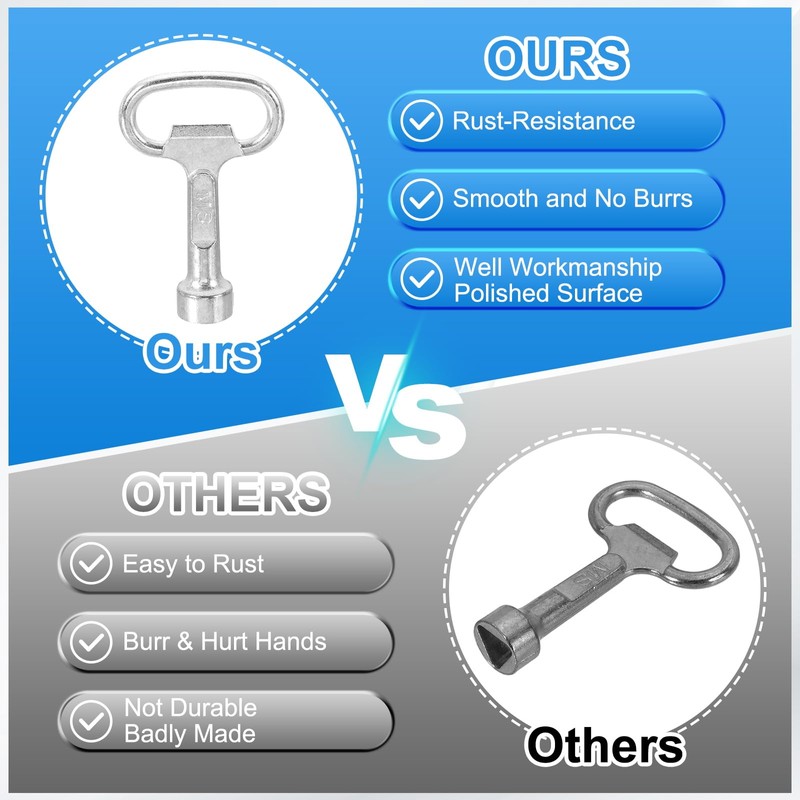 - Practical Tool: This utility key is compact enough to be attached to a keychain for easy portability. It doubles as a wrench and can also be utilized to open toolbox doors and electrical cabinet doors. It is particularly well-suited for use on doors and windows in public settings