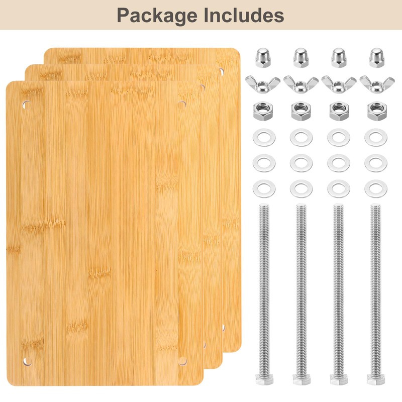 - This wooden book press board is portable size 29x20x1.8cm/11.4x7.9x0.7inch(L*W*H). You will receive 3 pieces of wooden boards, 4 pieces of hexagon bolts, 4 pieces of hexagon nuts, 12 pieces of gaskets, 8 pieces of wing nuts, 4 pieces of cap nuts to complete book binding.