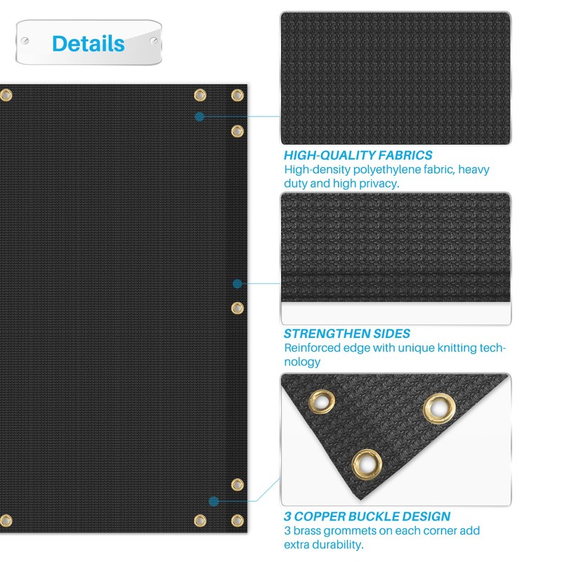 - Excellent Privacy: The privacy screen is knitted with 200GSM high-density polyethylene, which can block up to 95% UV rays while providing blockage. Reduce the prying eyes of neighbors or passersby on you. Prevent pets from barking due to their line of sight. Permeable fabric allowing maximum air circulation.