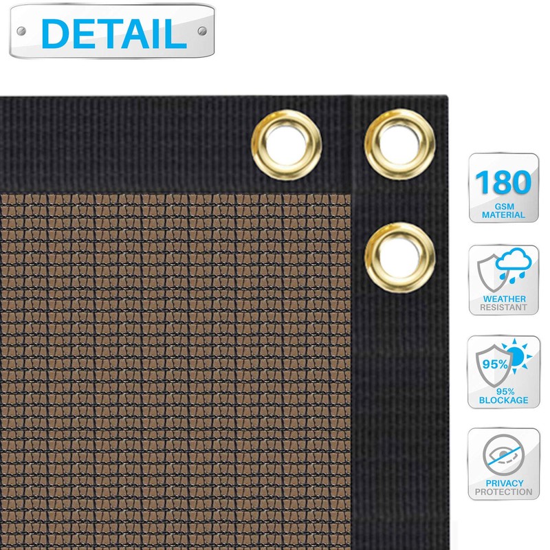 Patio paradise privacy fence screens are made of 100% pure brand new high quality pure polyethylene. These fence screens provide durability, high privacy rating, and air flow circulation. It compliments very well with both residential and industrial fences. It provides a nice look and brings privacy to ideal applications for home, yard, tennis courts, barriers, construction sites, landscaping and concert events. Edging is finished with black hemming and rustproof copper grommet every 12-18 inches on every side, and an additional 3 buckles on every corner to reinforce the stretch in the corner.