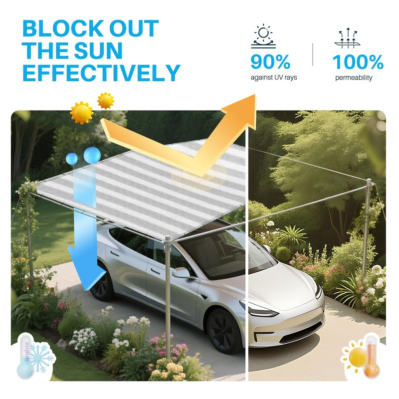- Lower the Temperature: Manufactured of High Density Polyethylene which is knitted instead of woven, allowing heat and humidity to rise through fabric while reducing ambient air temperatures up to 33% reducing your properties cooling cost and energy consumption
