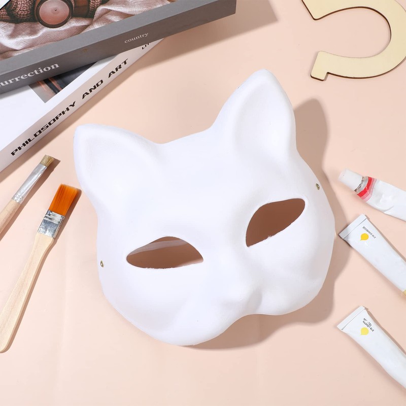 PATKAW Therian Cat Mask Cat Masks Paintable DIY Party Paper Mache Masks 10 Mini Masks DIY Blank Masks Unpainted Cat Half Lank Normal Masks Cat Masks for Painting Cat Masks Paintable