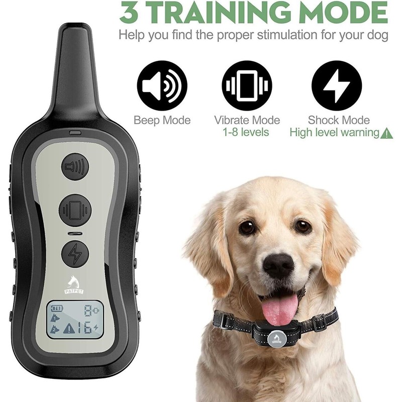 PATPET Remote Dog Shock Training Collar Rechargeable Waterproof LCD Pet Trainer 3 Modes