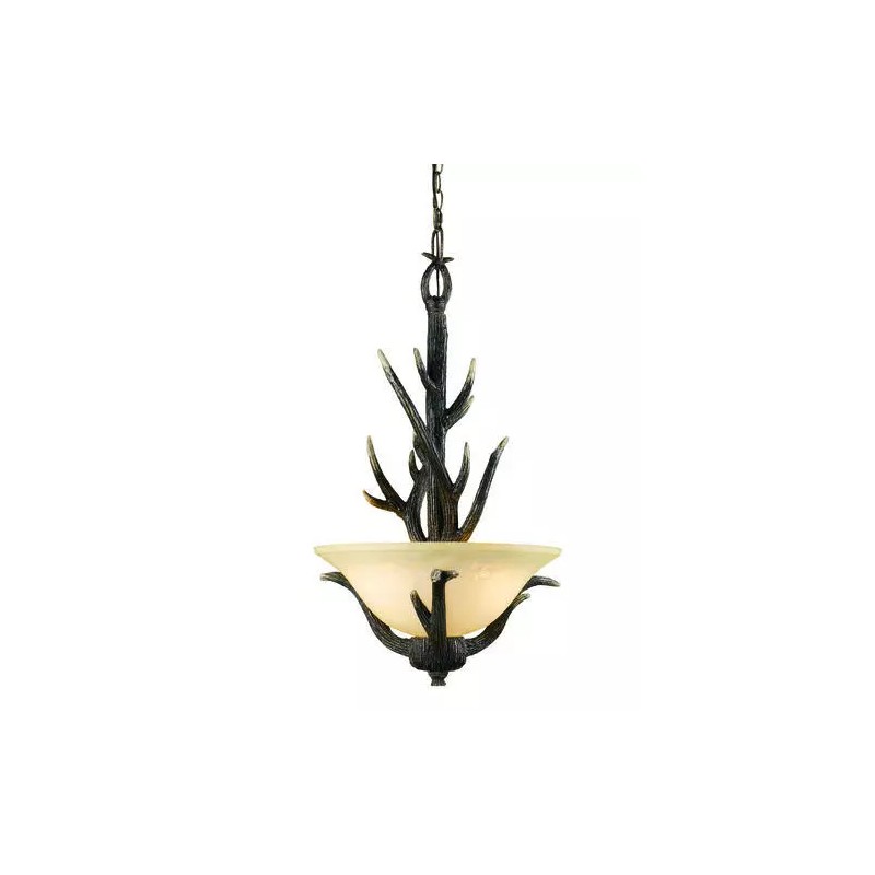 Patriot Antler With Crushed Stone Glass 3 Light Pendant/Chande