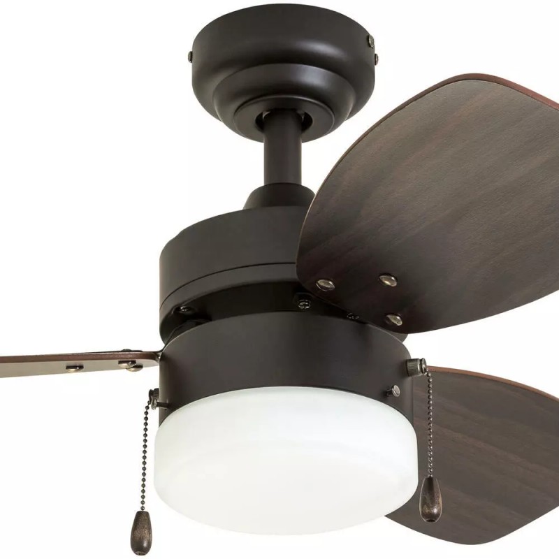 Complete your contemporary small space with the Gibson Street ceiling fan from Patriot Lighting. This bronze, three-blade, 30-inch fan is a dual-mount fan with chocolate maple and walnut reversible blades to give you options. You can add a universal remote, if desired.