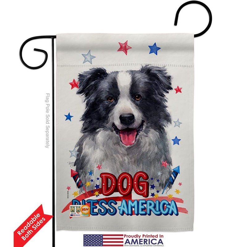 Patriotic Border Collie Garden Flag Set with Stand Animals Dog Puppy Spoiled Paw Canine Fur Pet Nature Farm Animal Creature Small Decorative Gift Yard House Banner Double-Sided Made In USA 13 X 18.5