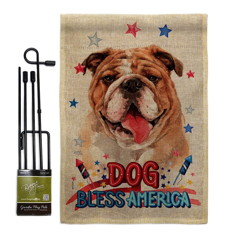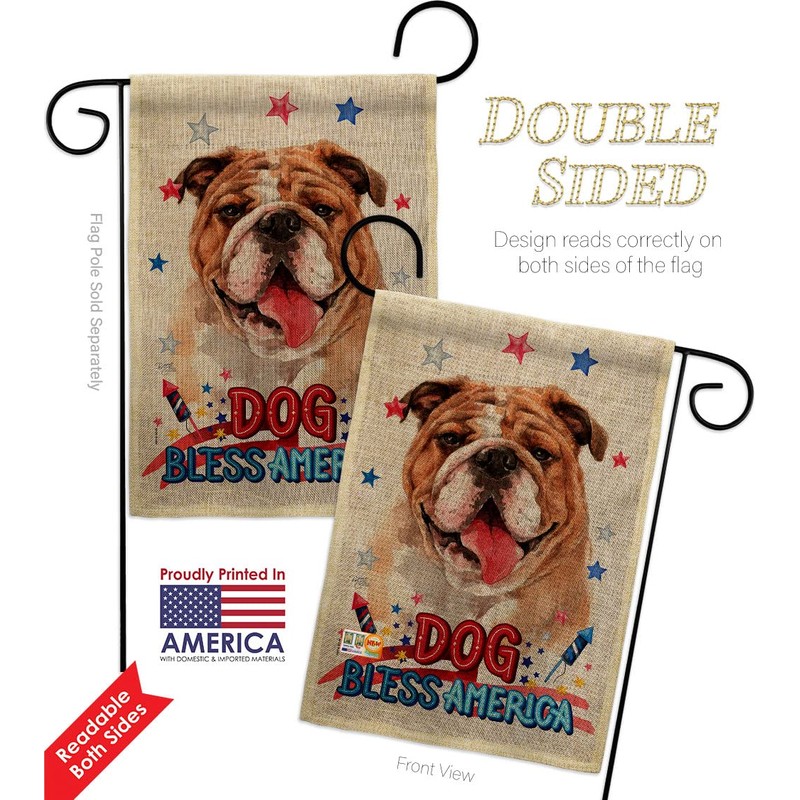 Patriotic Bulldog Burlap Garden Flag Set with Stand Animals Dog Puppy Spoiled Paw Canine Fur Pet Nature Farm Animal Creature Small Decorative Gift Yard House Banner Double-Sided Made In USA 13 X 18.5