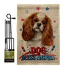 Patriotic Comforter Spaniel Burlap Garden Flag Set with Stand Animals Dog Puppy Spoiled Paw Canine Fur Pet Nature Farm Animal Creature Small Gift Yard House Banner Double-Sided Made In USA 13 X 18.5