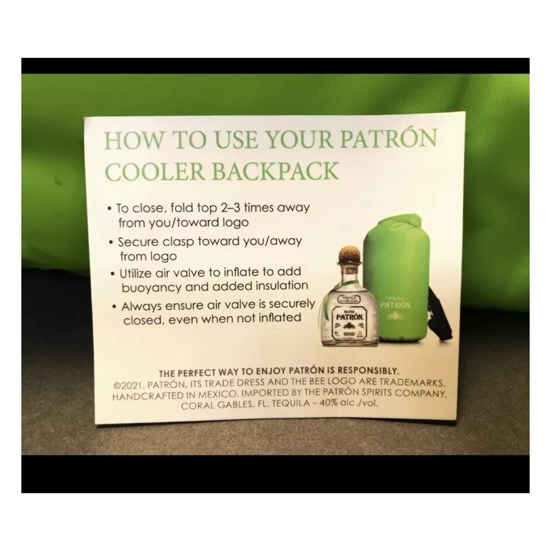 Crafted with high-quality materials, this green backpack tote is both durable and stylish. Whether you're heading to a music festival or just need a stylish way to transport your favorite Patron tequila, this dry bag is the perfect choice. Don't miss out on this unique and collectible item!