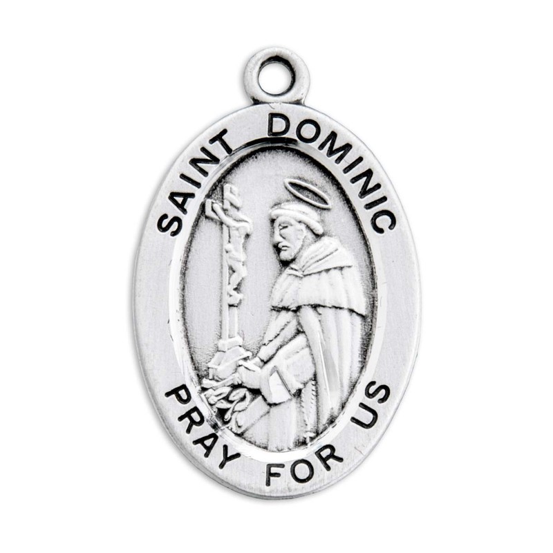 Patron Saint Dominic Oval Sterling Silver Medal | 0.9" x 0.6" (22mm x 14mm) | Deluxe Velvet Gift Box | 20" Rhodium Plated Curb Chain | .925 Sterling Silver | Patron Saint Medal Pendant Necklace