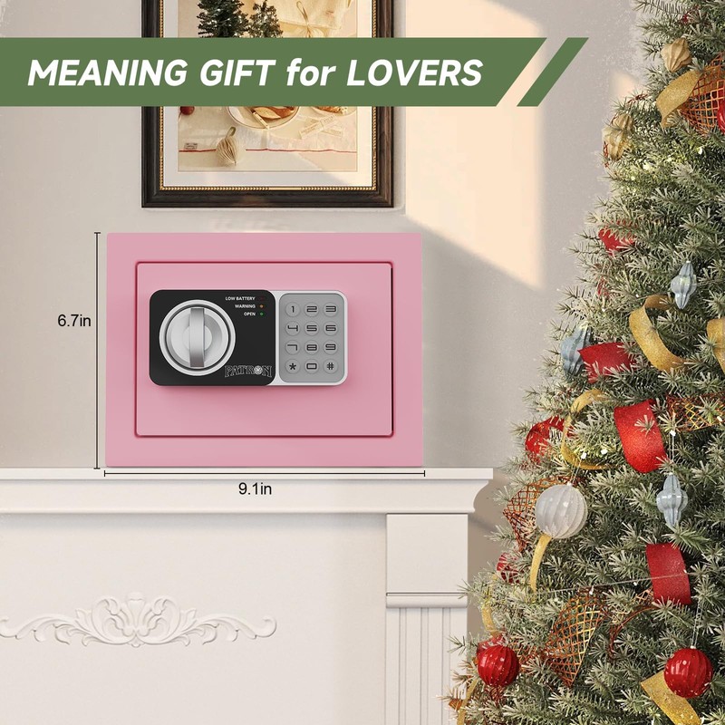 PATRON small safe box with key,mini safe for money,small coin safes for home with code,0.236 Cubic Feet Pink