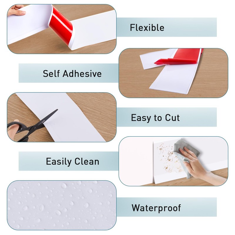🔥 **Easy Installation** – No pros needed! This flexible peel and stick vinyl baseboard with a strong adhesive backing, tear off the protective film, paste on the wall to finish. It can cut-to-fit for DIY simplicity.