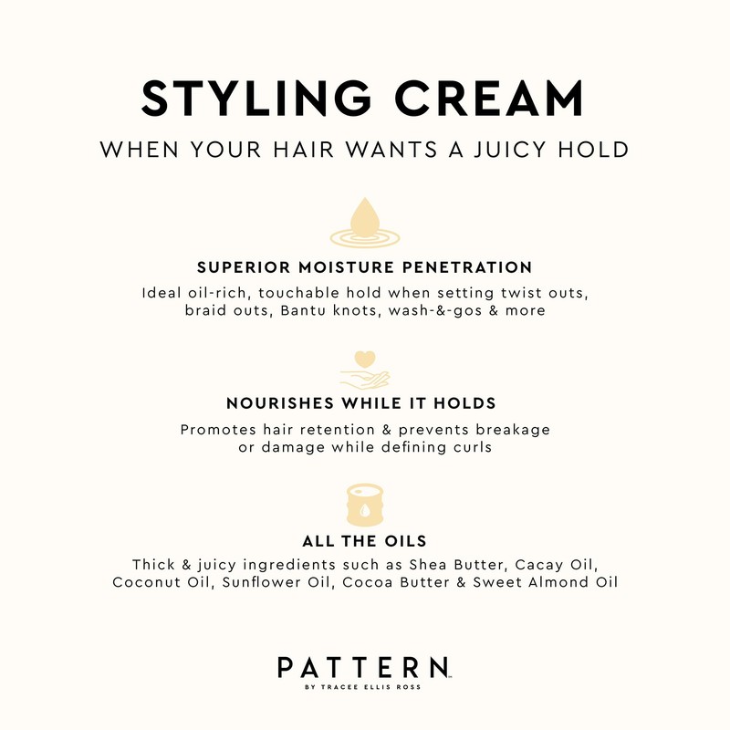 - Lookin' like a jar of thick buttercream, our Styling Cream is the curly hair cream of your dreams. This curl defining cream provides superior moisture penetration & the ideal oil-rich, touchable hold for a range of curl types and setting hair styles including twist outs, braid outs, Bantu knots, wash-&-gos & more.