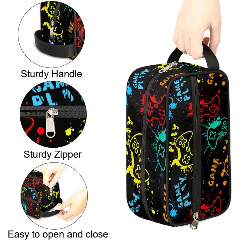 PATTERNFUL Game Start Travel Toiletry Bag for Kids, Waterproof Hanging Wash Bag Dopp Kit for Boys Shaving Bag for Toiletries Accessories