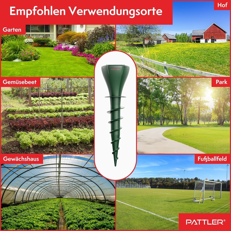 Der PATTLER Maulwurfvertreiber ist wasserdicht und hält auch widrige Wetterbedingungen aus. Ideal für den Einsatz im Garten.