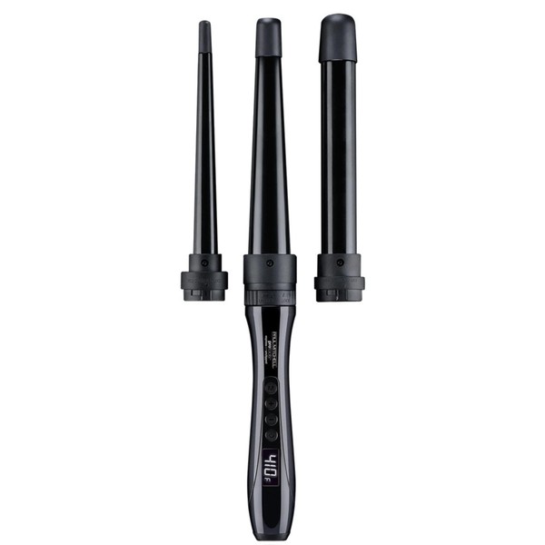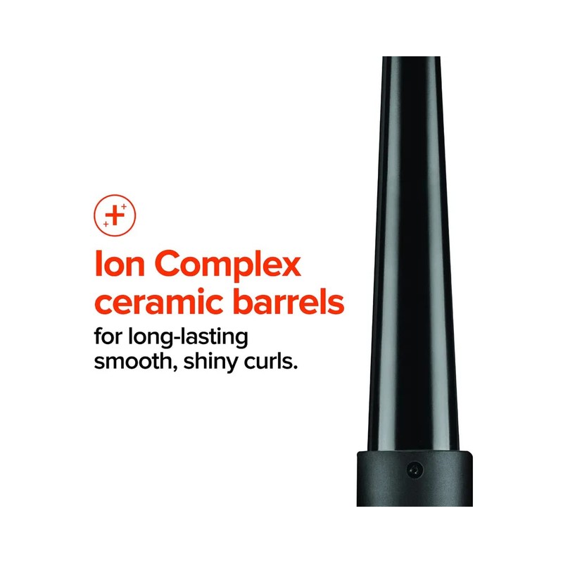 Go from loose waves to curls to ringlets. This 3-in-1 curling iron comes with three interchangeable ceramic barrels to create a variety of curl patterns: 1" styling rod for loose waves, 1.25" styling cone for natural-looking curls and .75" small styling cone for ringlets. Engineered with far-infrared technology and super-charged negative ions that heat hair gently and quickly from the inside out for smooth, hydrated curls with incredible shine and staying power. PRO FEATURES: • FAST: Heats up to 410°F in 60 seconds • ADJUSTABLE: Large digital display for easy temperature control • SAFE: Clamp-free design helps protect fragile ends from splitting and damage • MULTI-USE: Three tools in one to create limitless hairstyles • STRESS-FREE: Automatically shuts off after one hour for peace of mind • TRAVEL-FRIENDLY: Dual voltage for worldwide use Stylist Tip • Change up your barrels to create a variety of curls and hairstyles. EXTRAS INCLUDED: • One-Year Warranty • Instructions and Safety Guide