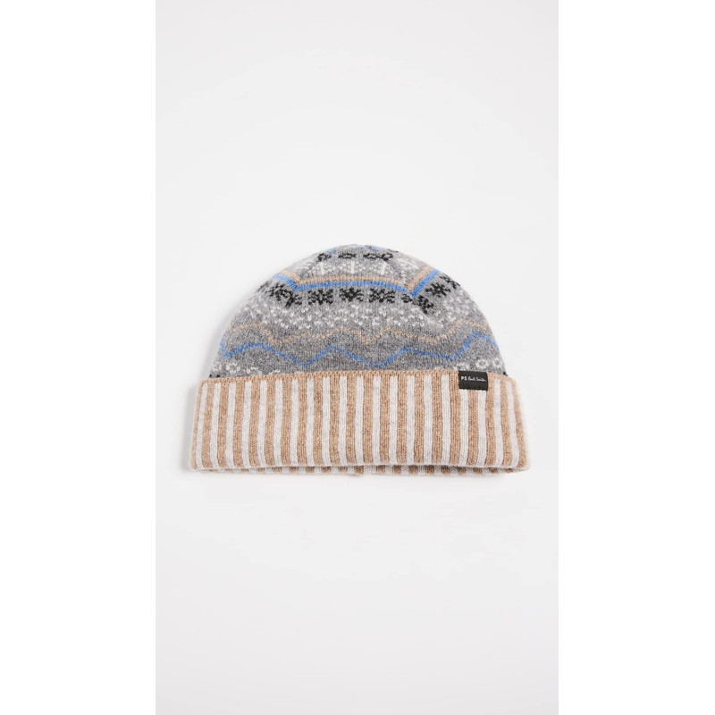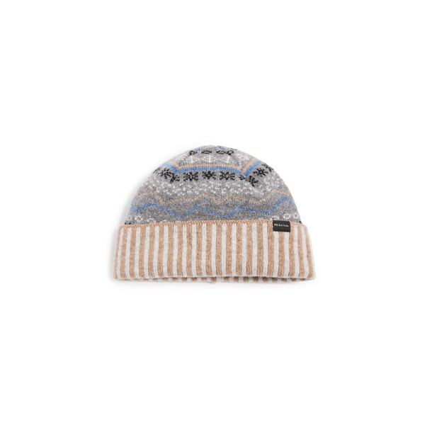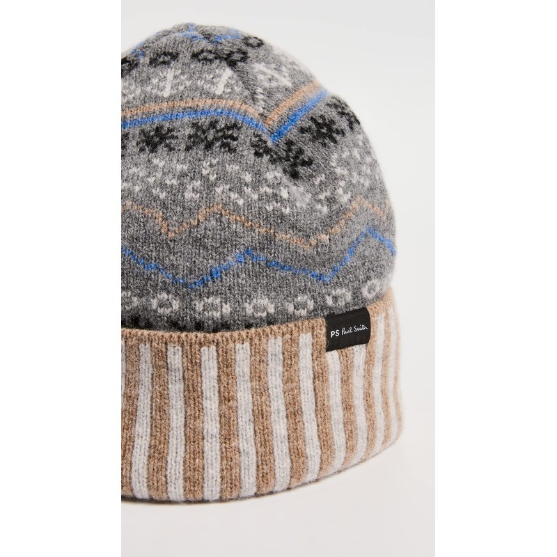 Paul Smith PS Men's Doodle Fair Isle Beanie Hat, Slate, Grey, Print, One Size