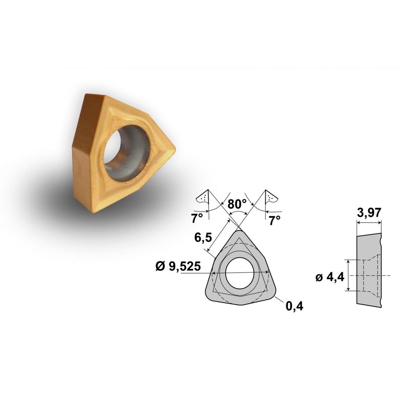 This turning tool with the standard designation SWUCR1620M06 has a shaft of 18 x 20 mm and a total length of 150 mm. The cutting plate is made of sintered carbide. The high temperature resistance of carbide allows higher cutting speeds unlike HSS chisels. In addition, this plate is titanium nitride coated, which contributes to higher heat resistance and service life. TiN-coated cutting plates are intended for universal use. This means that soft materials can be processed as well as hard materials. For special applications, this carbide insert can be replaced with another cutting plate that is suitable for the material to be processed. These special indexable inserts can be found in our range. You can also order the standard plates individually or in a set of 10.