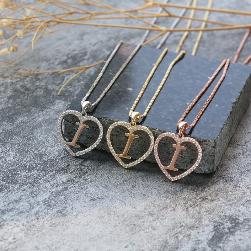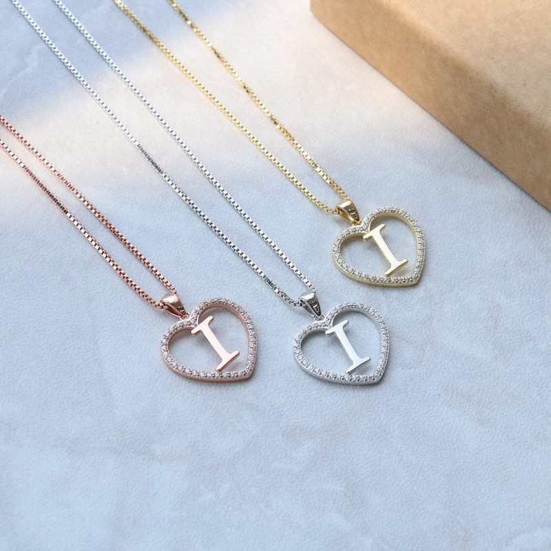 Beautiful letter necklace surrounded by numerous small zirconia stones in heart shape, which give the necklace shine and glamour.