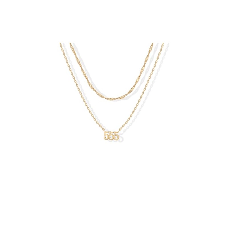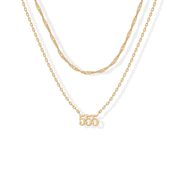 PAVOI 14K Yellow Gold Plated Angel Number Pendant Layering Necklace for Women | 555 Lucky Numerology Singapore Chain Necklace