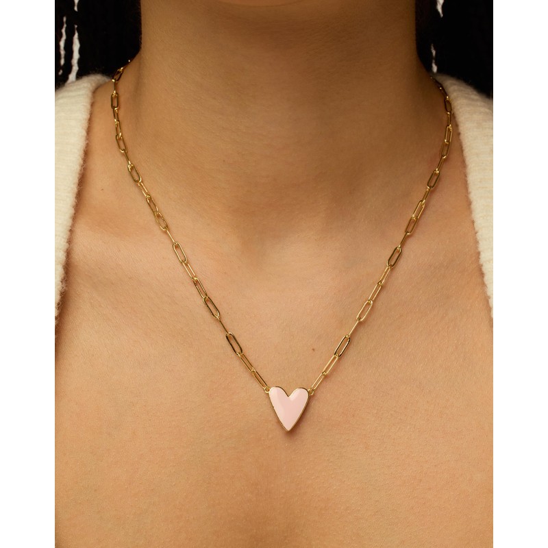 - Looking for something special to jazz up your everyday look? Check out our classic white heart enamel pendant necklace, perfect for adding a splash of color to your day. The adjustable 19" paperclip chain makes it super easy to get the length just right, whether you're layering it up or rocking it solo. It's a fun little addition to any outfit, ready to grab some compliments and brighten your day.