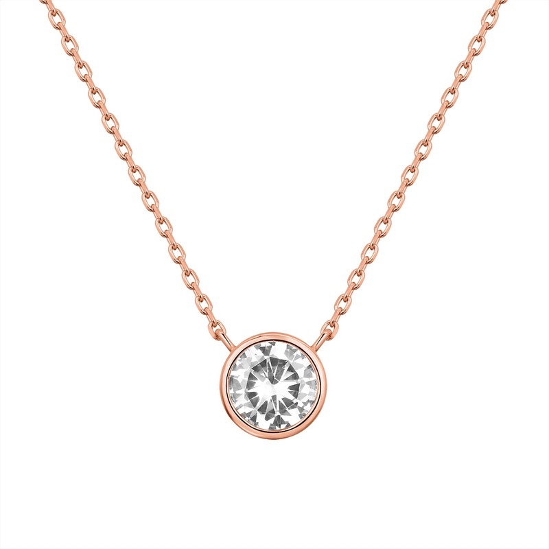 PAVOI 18K Rose Gold Vermeil 1.00 ct (D Color, VVS Clarity) CZ Simulated Diamond Bezel-Set Solitaire Choker Necklace | Necklace for Women