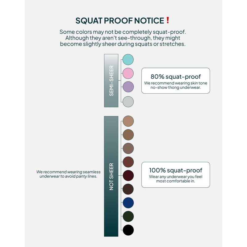 - FEATURES - 4" upper mid-thigh inseam and squat-proof (not see-through!) dark colors for peace of mind at the gym.