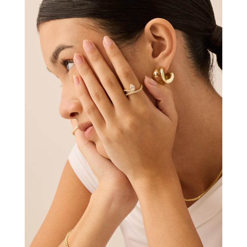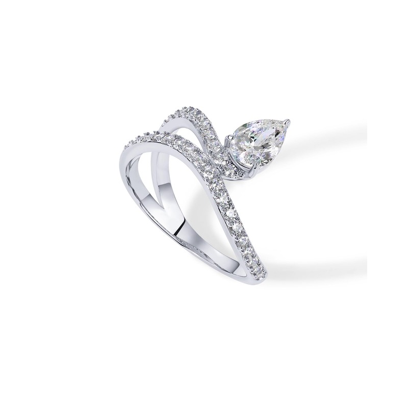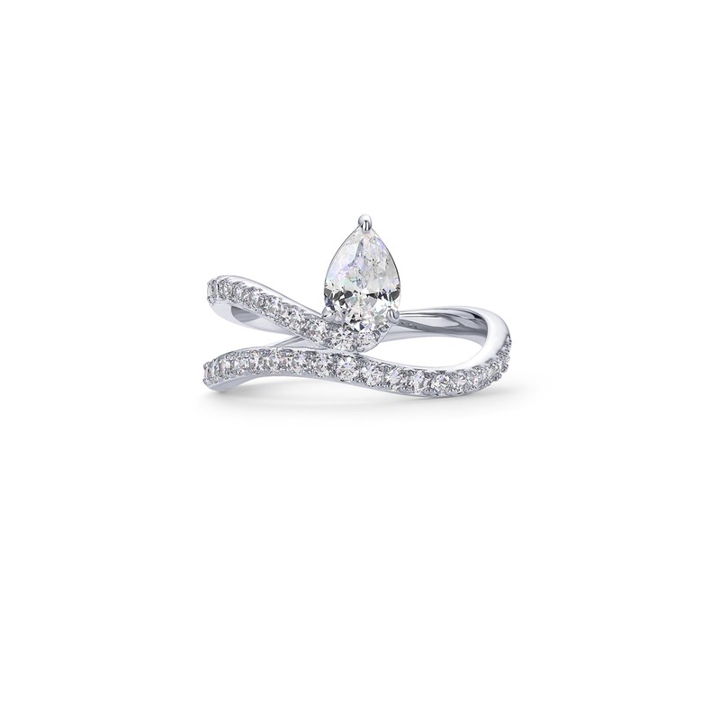 - Say "yes" with this unique engagement ring, featuring a wraparound wavy band ending in a 5mm x 7mm pear-shaped 88 cuts cubic zirconia stone. This wavy rhodium plated promise ring features a 1.9mm wide band and a distinctive style that adds a touch of charm to any occasion.