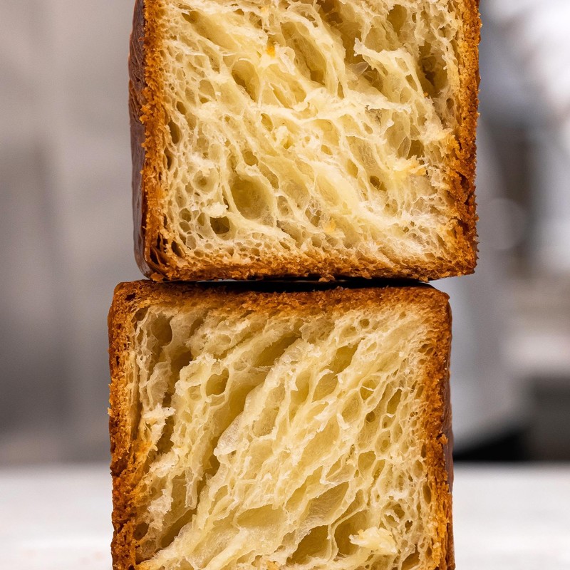- Mold with lid, both stainless steel, for baking a cubic "croissant"