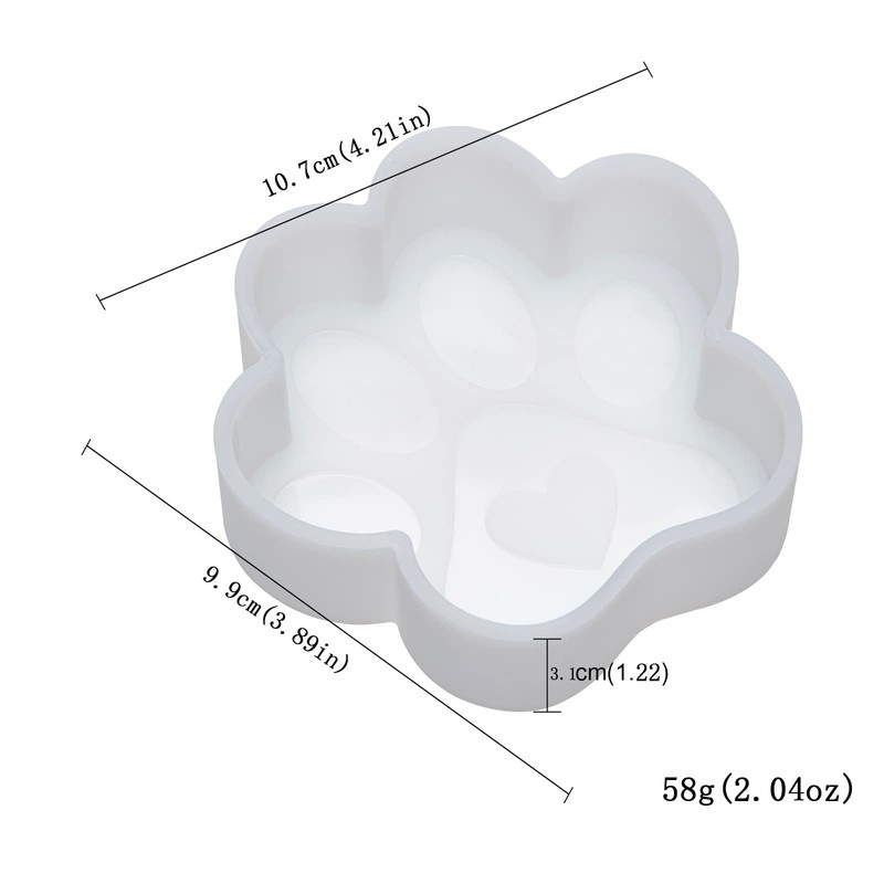 Paw Print with Heart Resin Silicone Mold - Large Car Freshie Molds for DIY Baking Aroma Beads Soap Candles