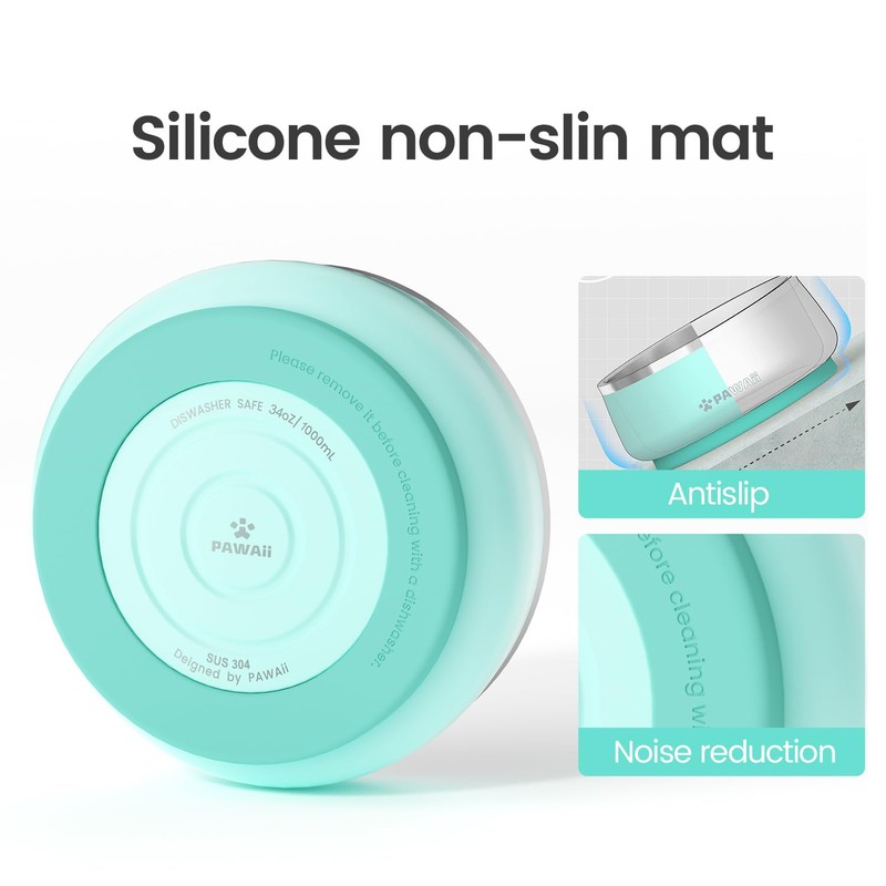 Pawaii Dog Bowl, Dog Food Water Bowl with Non-Slip Rubber Base, Metal Insulated Stainless Steel Dog Bowls with ID Tag, Double Wall Dog Bowl for Small Medium Large Dogs, Durable, Dishwasher Safe, 34oz