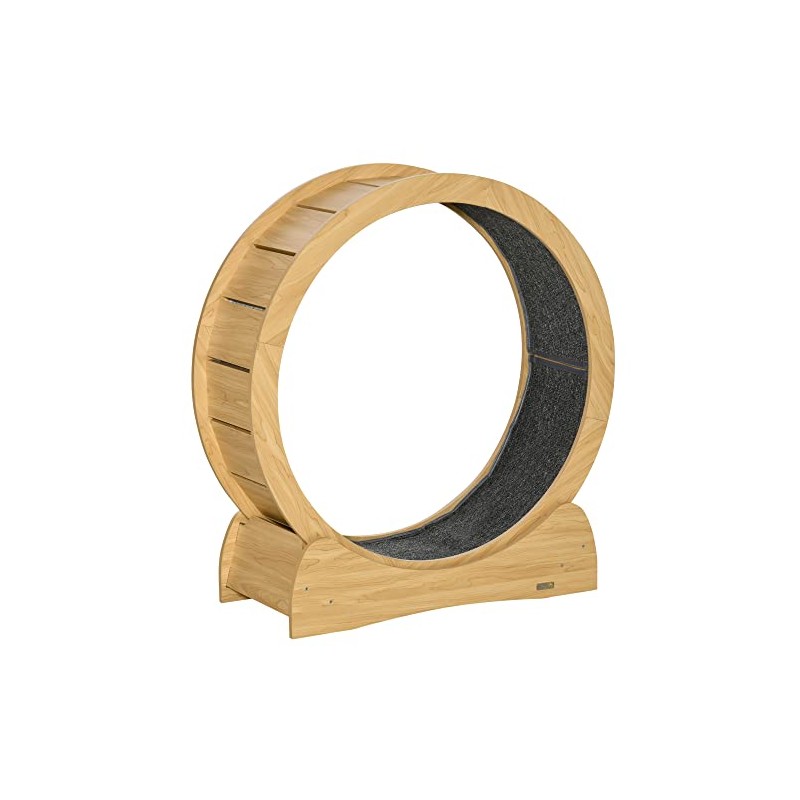 PawHut Cat Exercise Wheel Treadmill with Natural Wood Grain, Cat Spinning Whe...