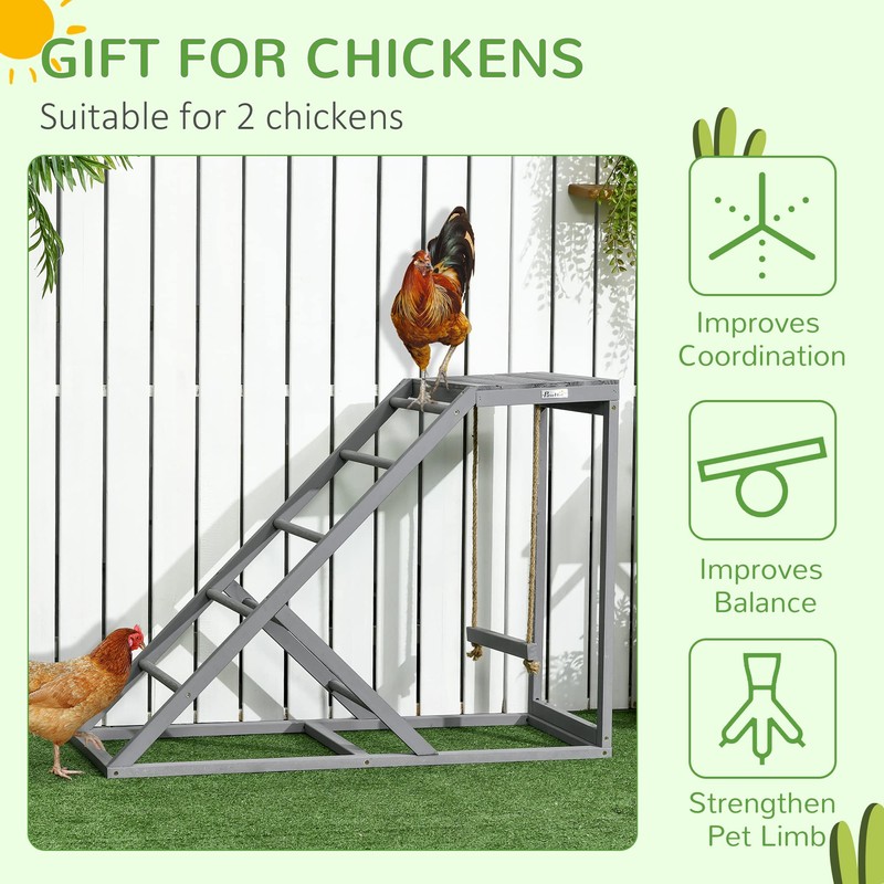 PawHut Chicken Activity Play for Healthy & Happy Animals, Swing Set with Chicken Perches & Hen Ladder, Chicken Coop Toy