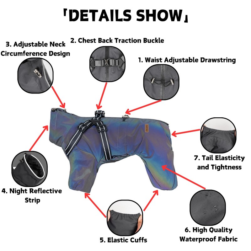 - Multi-Scene Use: Crafted with durable and waterproof materials, this product is built to withstand the toughest conditions. Whether you're hiking, camping, or simply running with your dog, this multi-functional accessory has you covered with its practical and well-thought-out design. For a rainy walk, the dog wears a raincoat, which can greatly reduce the scope of getting wet, prevent the temperature from dropping, and keep the dog warm.