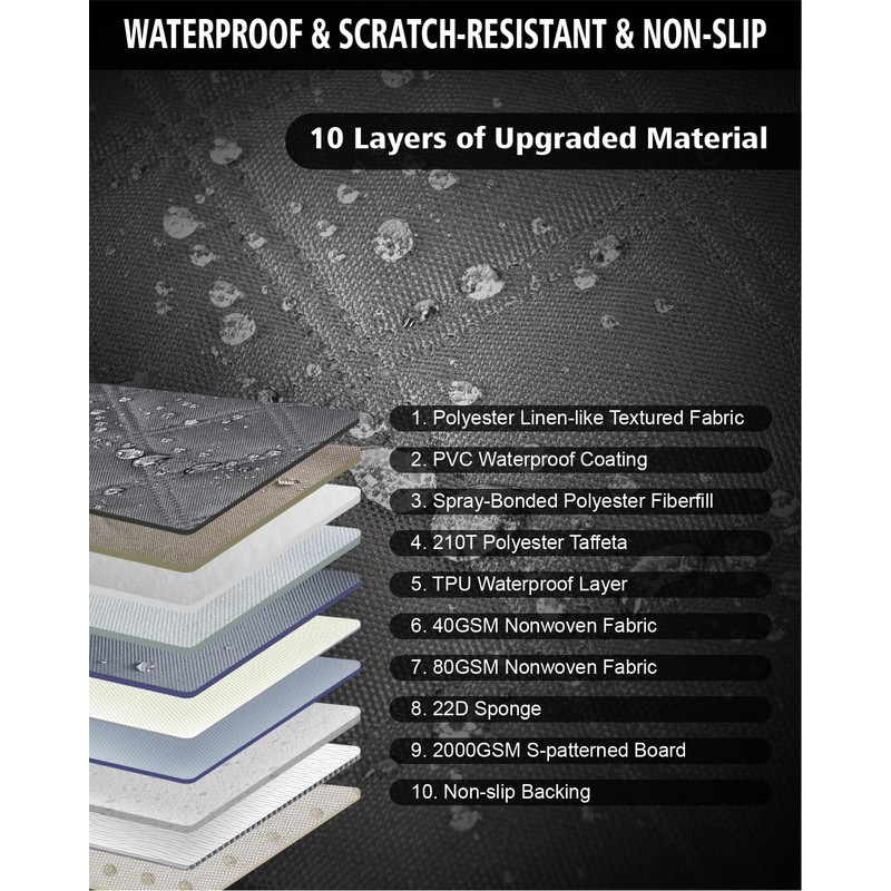 - Waterproof, Scratch-resistant & Non-slip: Constructed with 10-layer materials including PVC coating, TPU and 210T polyester, this dog back seat extender resists spills and wear. The 8mm high-density sponge and S-patterned board ensure stability, while the polyester linen-textured surface provides grip and scratch resistance.