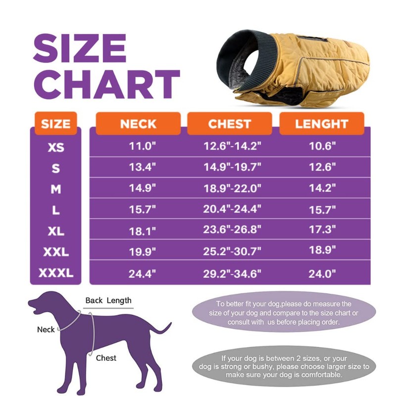 • SIZE VARIETY: A selection of stylish colors and size options make these the perfect dog coats for small dogs, medium and large breeds to keep warm this winter.