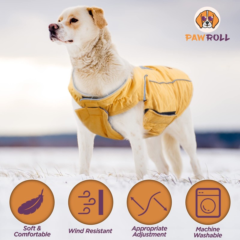 PawRoll Winter Dog Jacket - Waterproof, Windproof, Cold Weather Dog Winter Jacket Ideal for Small, Medium & Large Breeds, Machine Washable (Medium, Yellow)