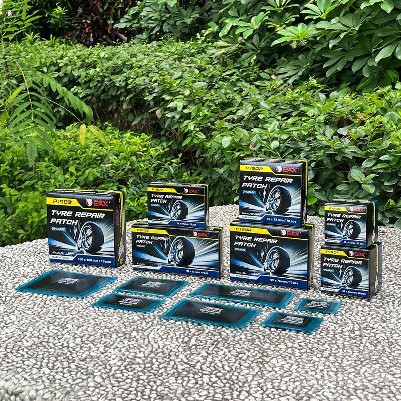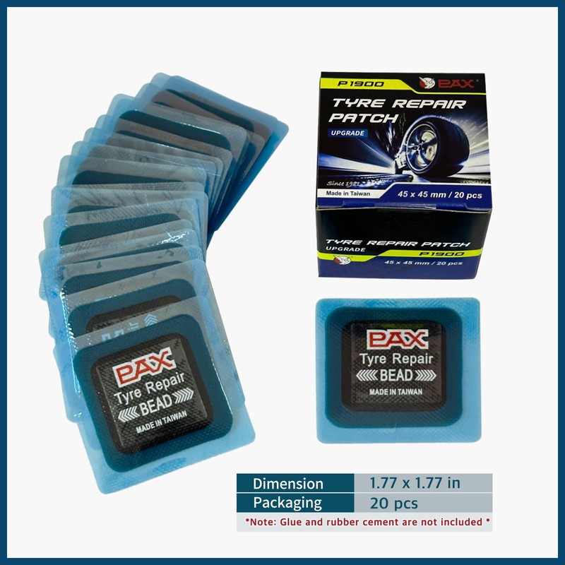 - 【Specification】PAX 3.94x3.94 inch / 100x100mm Square Universal Tire Repair Patches. 10 pcs per box, very economical and practical. *Note: This patch needs to be used with rubber cement/glue, patch is non-sticky. Glue and cement are not included in this packaging.*