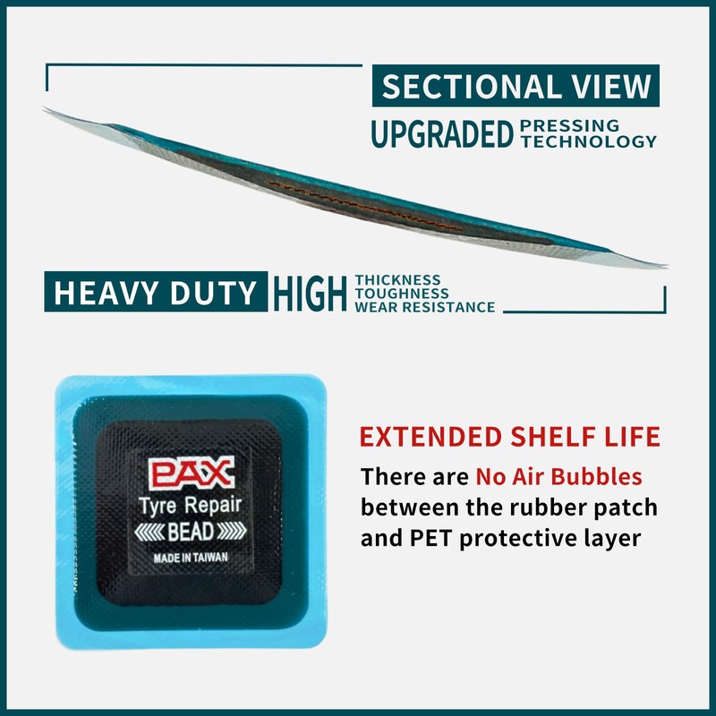 - 【New Pressing Technology 】The most exclusive ingredients and new pressing technology, the patch is pressed more tightly, improving its flexibility and durability, and making it more compliant with the tire. In addition, the patch is pressed more closely with the upper and lower PET films and is in a vacuum state without bubbles, further extending the patch's storage time and life.