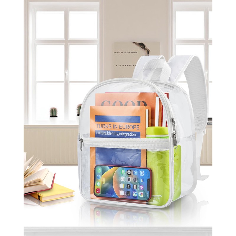 - 【Plenty of Room】 - The clear backpack measures 12x10.5x6 inches, and the main compartment has plenty of room for everyday essentials like an iPad, books, diaper;