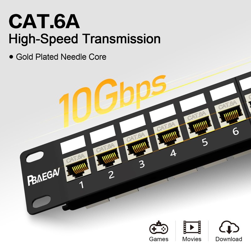 PBAEGAV Patch Panel 24 Port with 24 Pcs Cat6A Keystone Jack STP 10G Support with Removable Back Bar 1U Network Patch Panel 19 Inch for Cat6,Cat5e,Cat5 (CAT6A, 1U24Port)