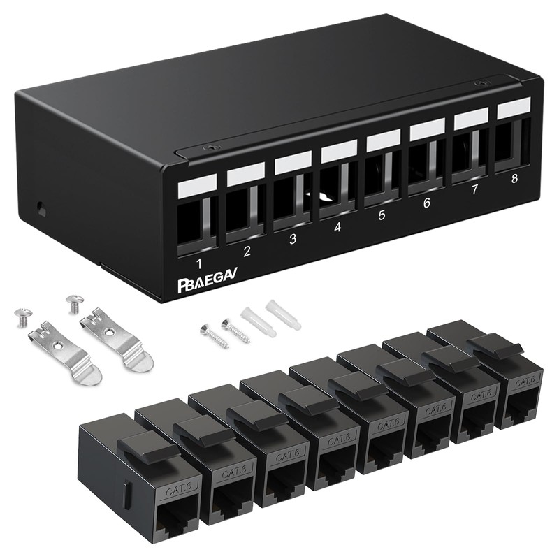 PBAEGAV Patch Panel 8 Port with 8pcs Cat6 Keystone Jack UTP No Rust and Durable (1U 8Port Cat6 Keystone Jack Unshielded)