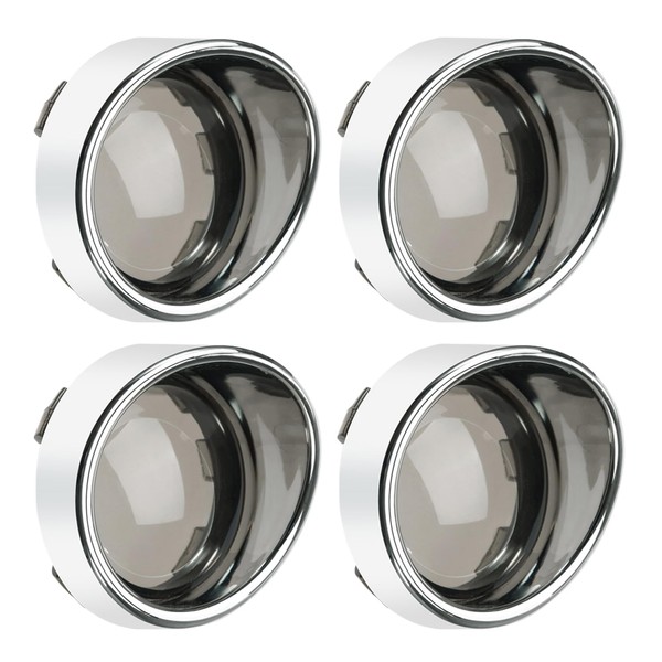 PBYMT Smoke Turn Signal Lens Cover 2" Bullet Visor-Style Chrome Bezels Compatible for Harley Touring Dyna Street Glide Road King Road Glide Softail Sportster Custom Cruiser 2000-2024 (4pcs)