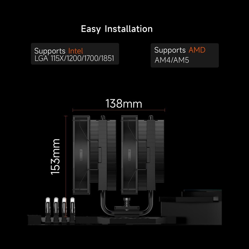 • 【Broad Compatibility】This Quiet CPU Cooler Supports Intel (LGA 115X/1200/1700/1851) and AMD (AM4/AM5) platforms, suitable for modern high-performance CPUs.