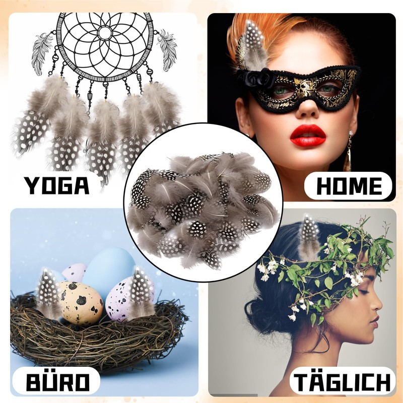 - Exquisites Aussehen: Die federn des wilden Perlhuhns haben natürliche Flecken, die Muster sind originell und exquisit, die Federn sind klein und leicht, weich, bequem und hell, was sie zu perfekten handwerklichen Dekorationen macht.