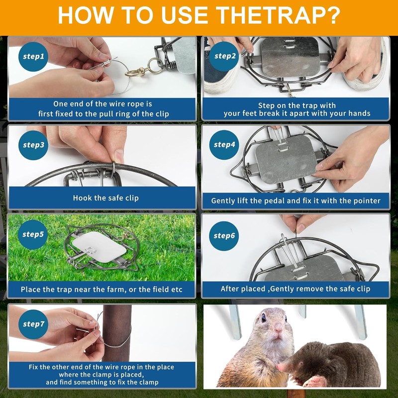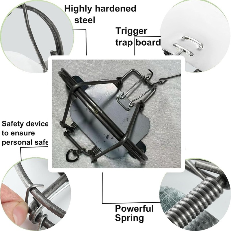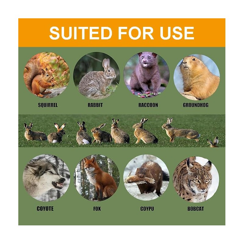 - Reinforced wire rope : Standard 3.3 ft wire rope to prevent prey from breaking free or dragging the trap out of place