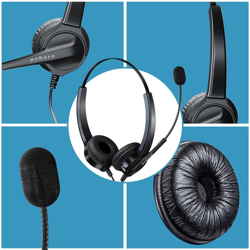PChero Landline Telephone Headset with Mic, RJ9 Binaural Hands-free Noise Cancelling Headphones Corded Headset for Home House Phones